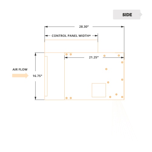- Top and bottom access panels for servicing and removal of motor-blower assembly